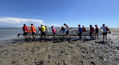 L’après-midi, place à la rame ! Mise à l’eau des yoles de mer depuis le club pour une première boucle de 25 km au cœur du bassin jusqu’aux fameuses cabanes tchanquées. Le samedi soir, tout le monde se retrouve au club pour un repas convivial, où l’on partage aussi bien les plats que les anecdotes de la journée….et surtout on fait la fête !